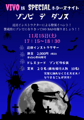 ゾンビ de ダンス!辻田インストラクターのスペシャルイベント開催11月15日(土)、Vivo Bearsi 香櫨園店にて辻田インストラクター...read more