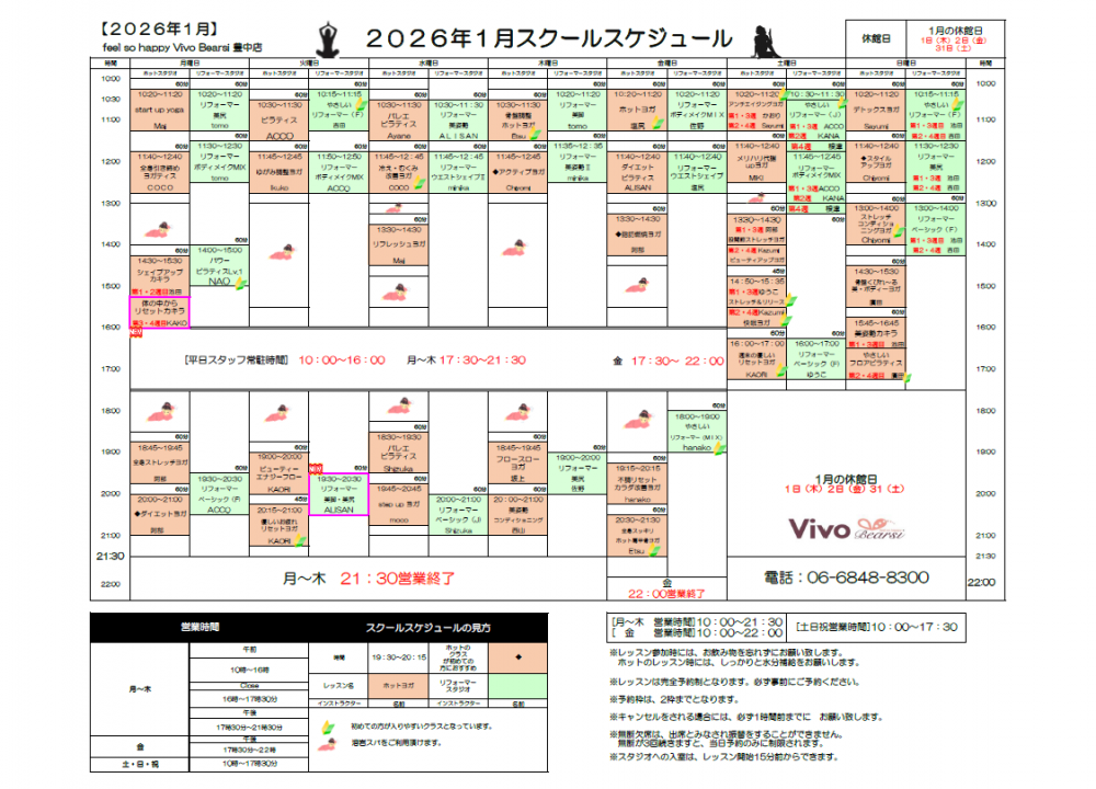 ※一部レッスンは通常と異なりますので、祝日プログラムをご確認ください。