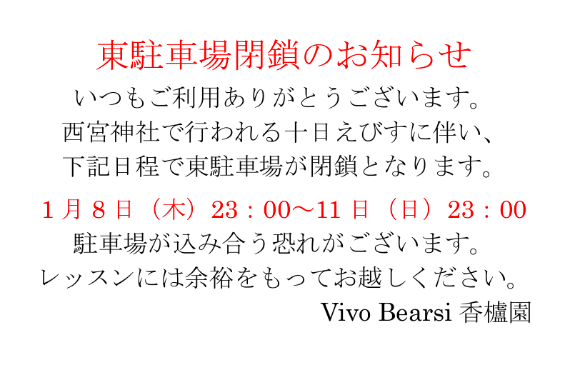 いつもVivo Bearsi香櫨園店をご利用いただき、誠にありがとうございます。