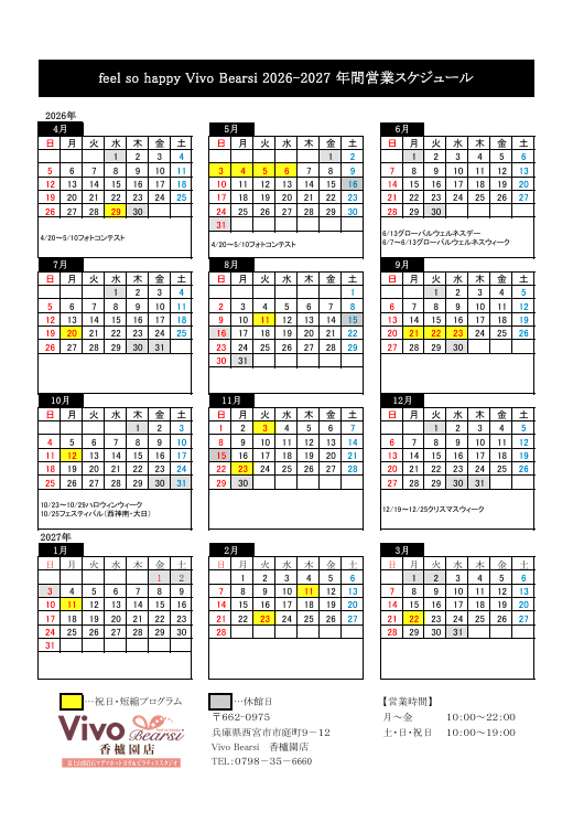 いつもVivo Bearsi香櫨園店をご利用いただき、誠にありがとうございます。