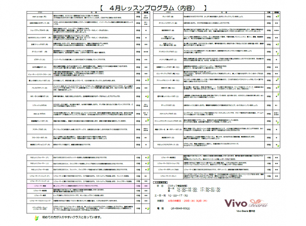 各クラスの詳細やレベル感もご確認いただきながら、ご自身に合ったレッスンをお選びください。