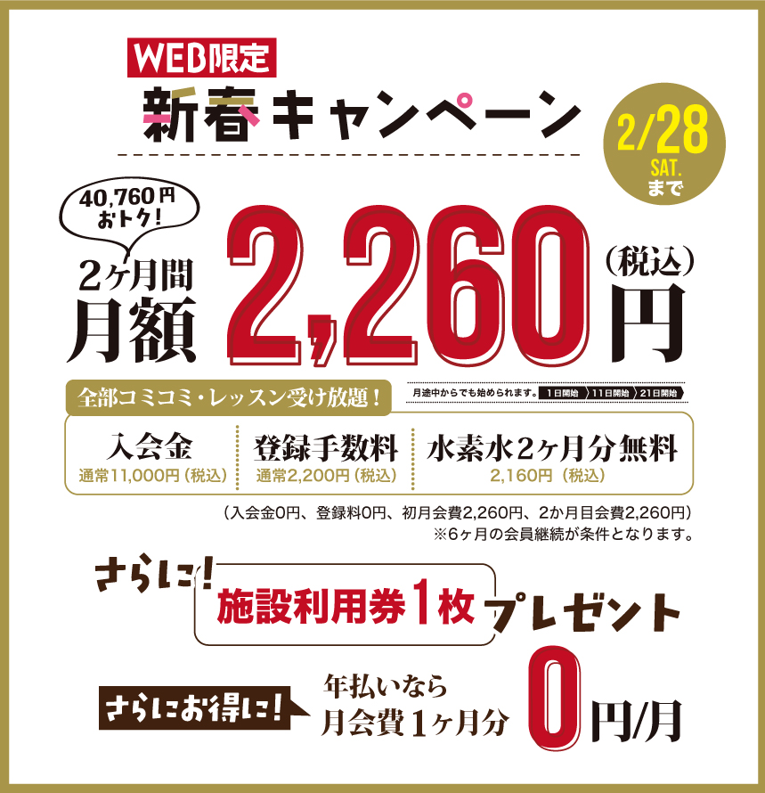 ※ご入会手続き受付時間は、営業終了1時間前までとなります。