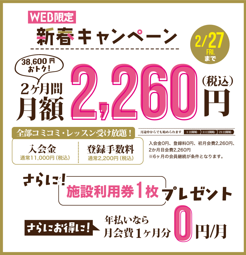 ※ご入会手続き受付時間は、営業終了1時間前までとなります。