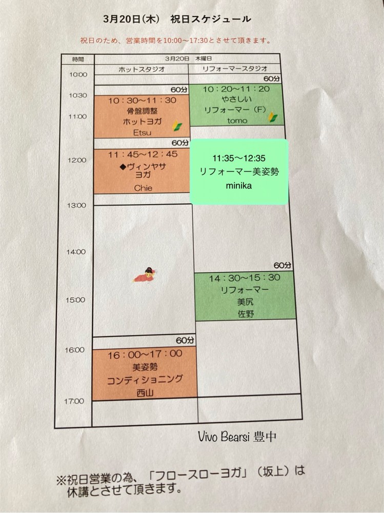本日、3月20日(木)は、祝日短縮プログラムになります!!