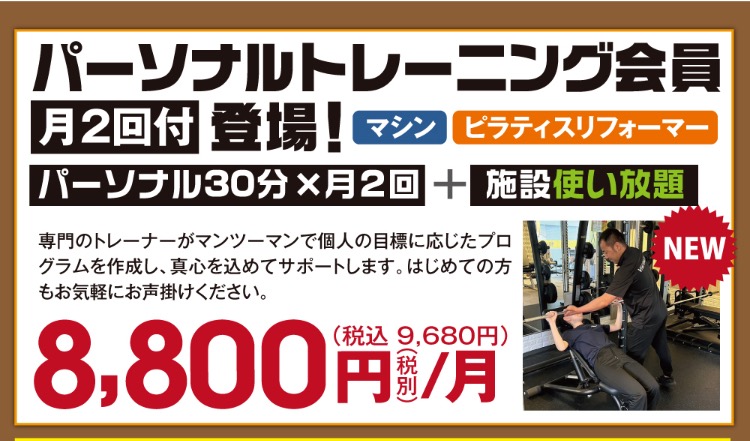【好評】月2回のパーソナルと施設使い放題プラン