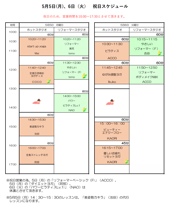 5月5日(月)、6日(火)は祝日短縮プログラムです。