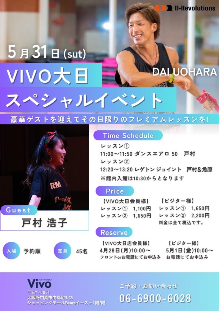 Vivo大日店・PREFIT24GYM会員:4月28日(月)10:00~