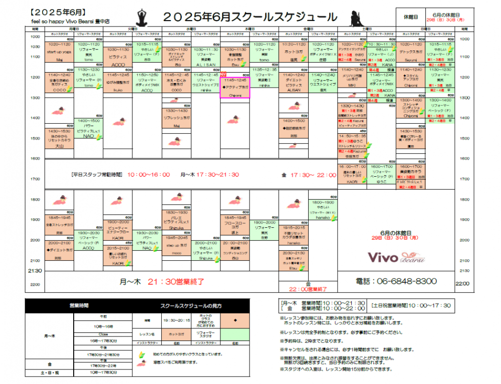 6月のレッスンスケジュール!!