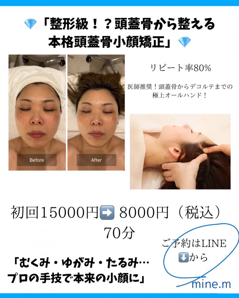 医師推奨!頭蓋骨小顔矯正 【mine.m】フェイシャルエステサロン
