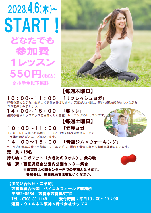 西宮浜総合運動公園の公園センターや公園の遊具を活用してのヨガやトレーニングといったレッスンを開講しました!