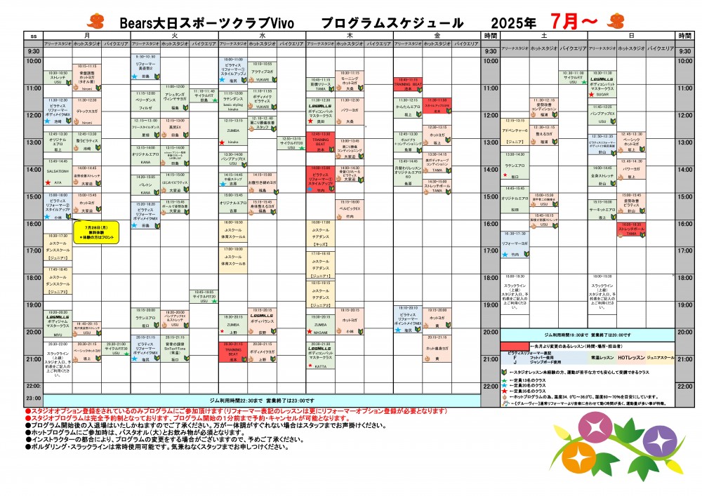 7月レッスンスケジュール