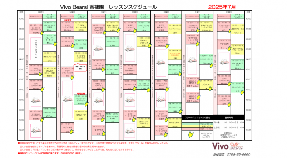 今すぐ香櫨園店の7月スケジュールをチェックして、体験レッスンを予約しましょう!夏に向けた身体づくりをVivo Bearsi香櫨園店でスタートしませんか?