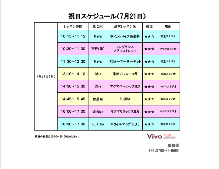 7月祝日スケジュールのご案内