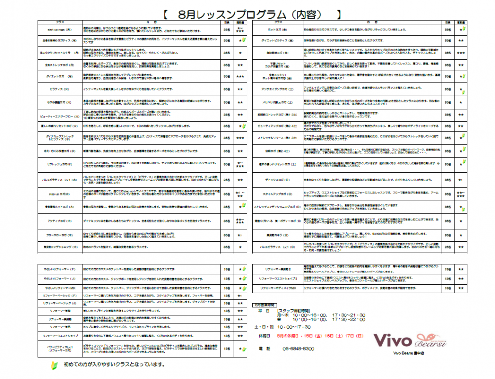 \8月のレッスンスケジュールをご案内します/