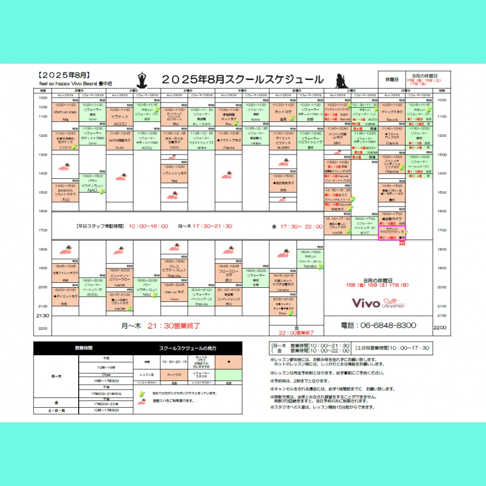 8月のスケジュールが一部変更になりました♪