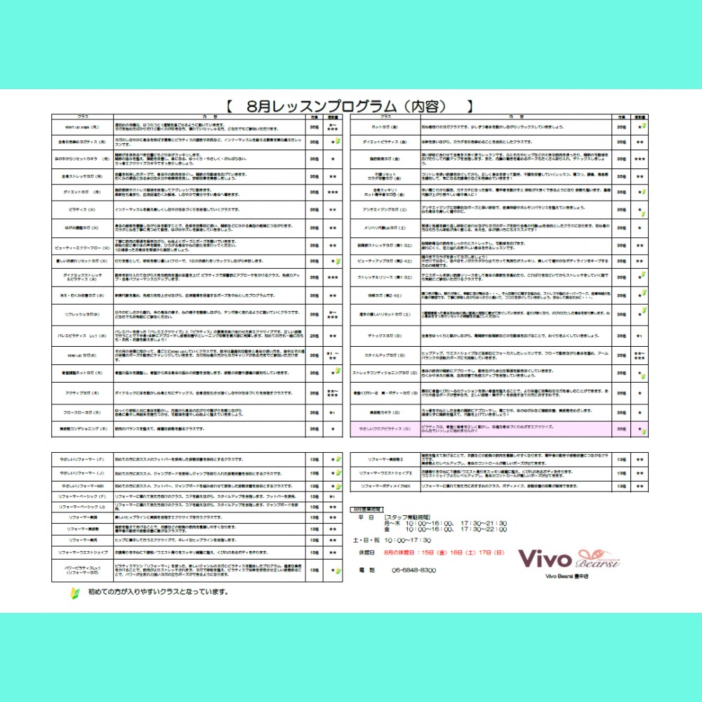 気になるレッスンがあれば、お早めにご予約を☆