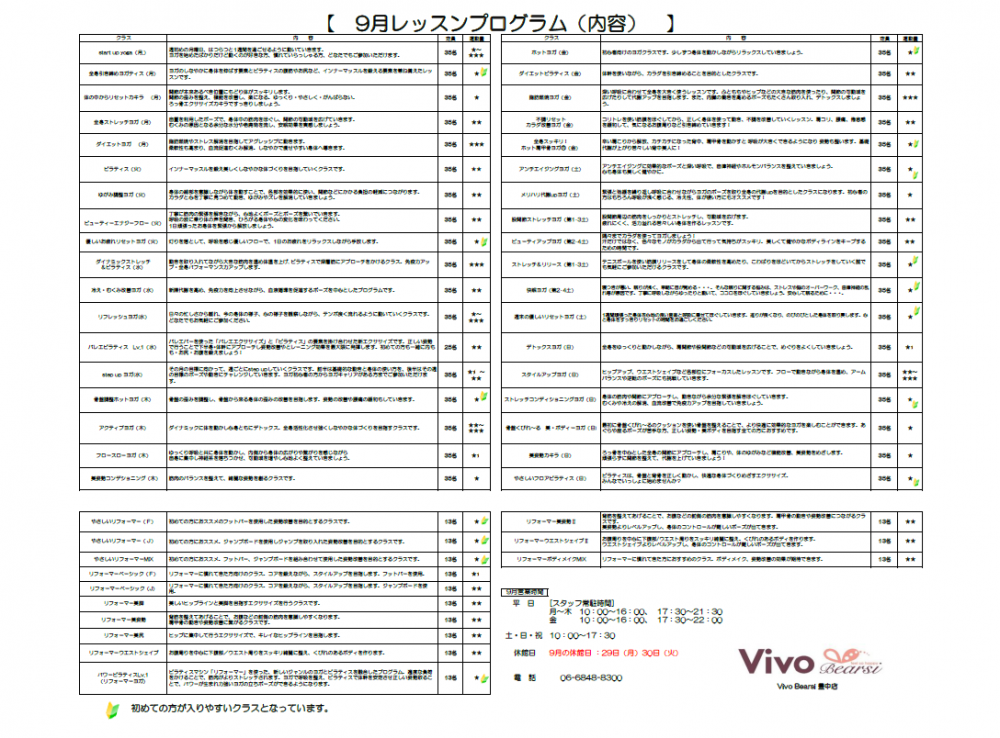◆── 9月のおすすめレッスン ──◆