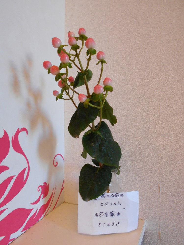 フロントに飾るお花が、新しく ヒペリカム に変わりました☺