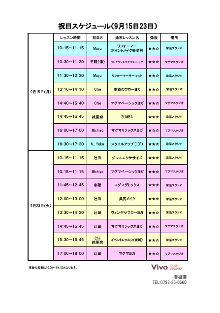 9月は「敬老の日(15日)」と「秋分の日(23日)」の祝日があります。香櫨園店では、通常のマグマヨガやピラティスリフォーマーに加え、祝日だけの特別プログラムをご用意しました☆