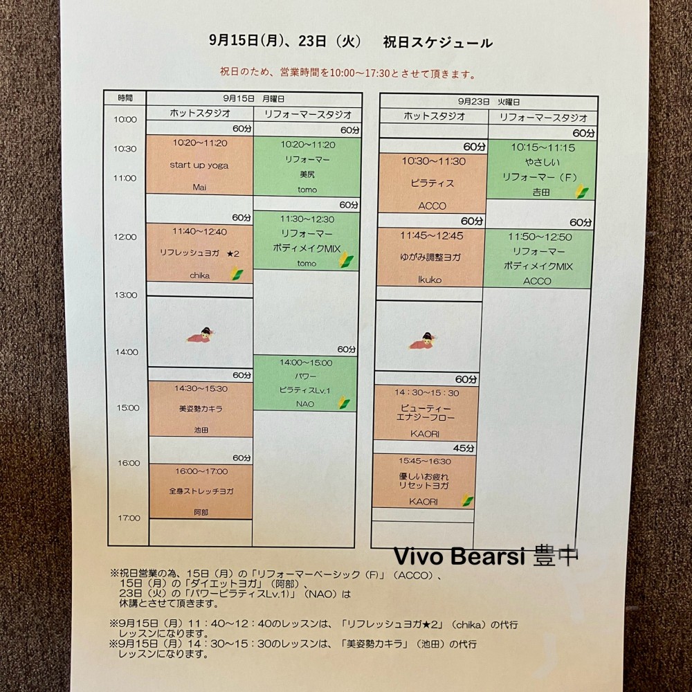 ◎9月15日(月・祝)は祝日・短縮スケジュールで営業いたします!