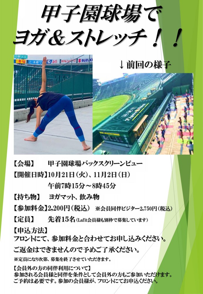 【甲子園球場ヨガ&ストレッチ】が、秋の爽やかな朝に帰ってきます。