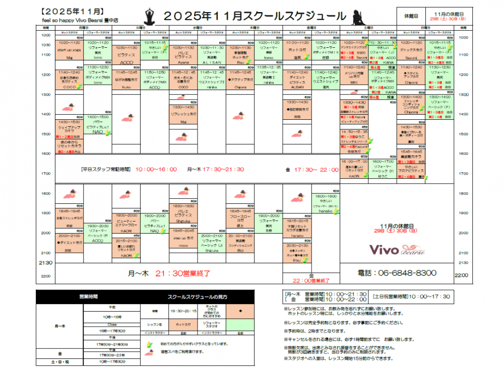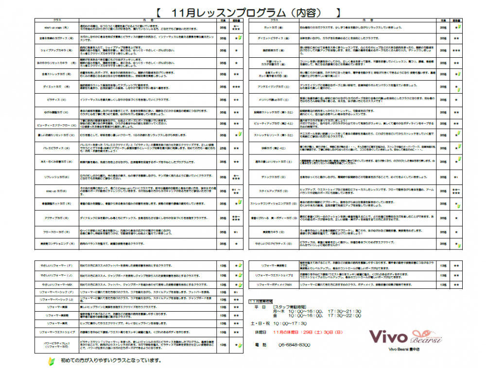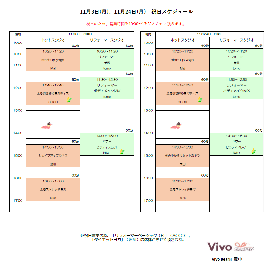 11月もVivo Bearsi 豊中店で、心と体をリフレッシュさせましょう☆
