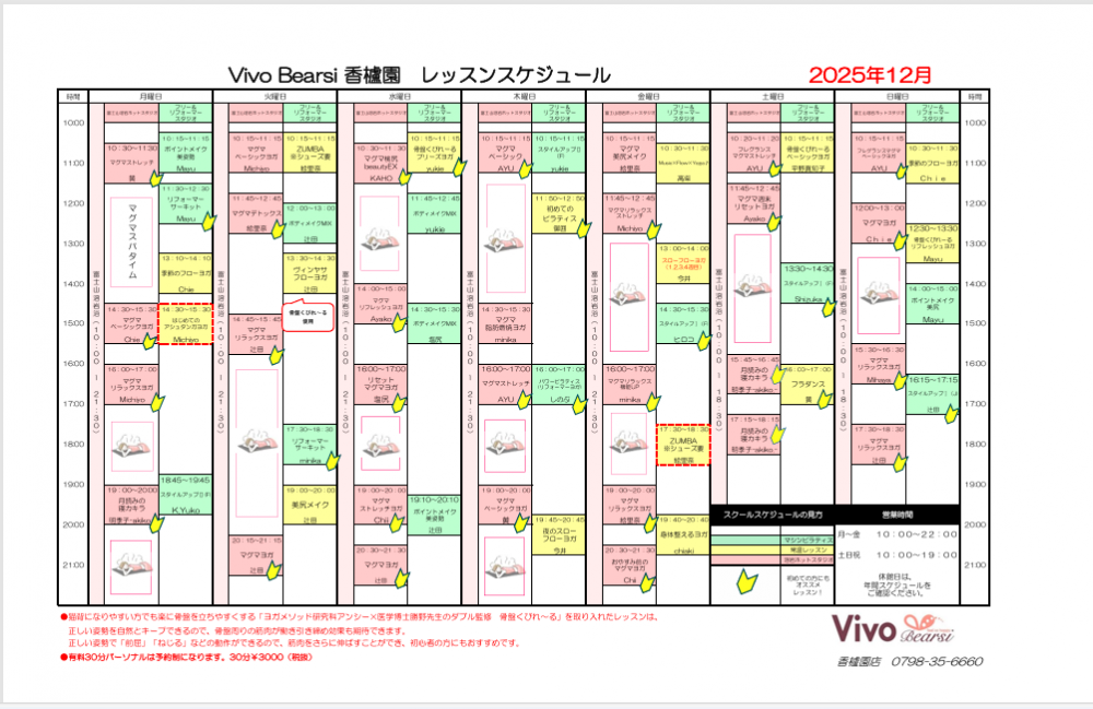 12月レッスンスケジュール&イベント情報