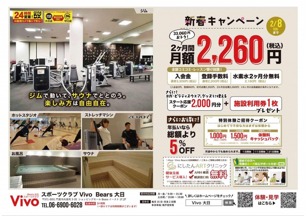 2か月間全ての施設をご利用いただけるキャンペーンを実施中です。