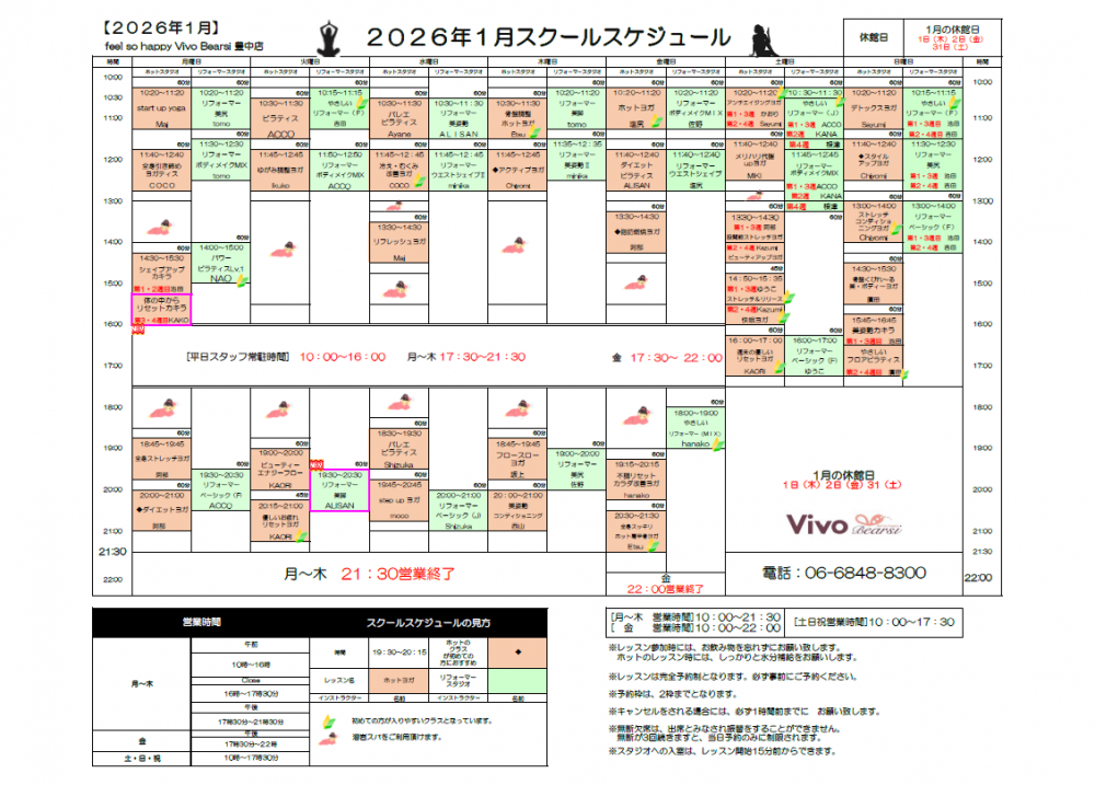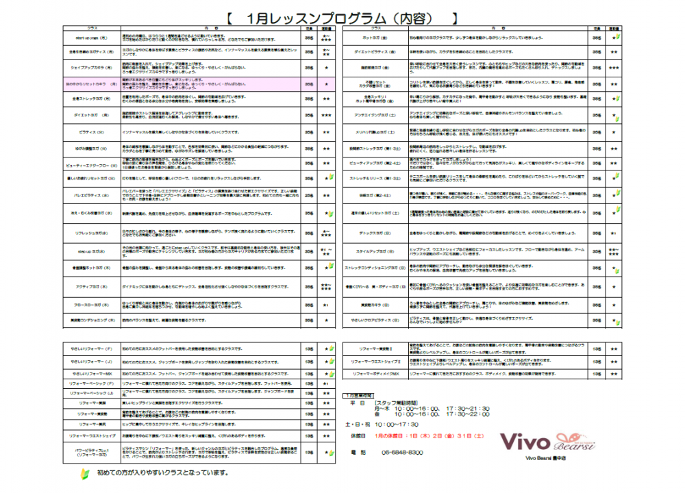 寒い季節も心地よく。1月レッスンスケジュールのご案内(^^♪