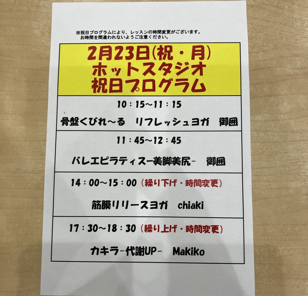 祝日プログラムにより、レッスン時間の変更がございます。お時間を間違われないよう、ご注意ください。