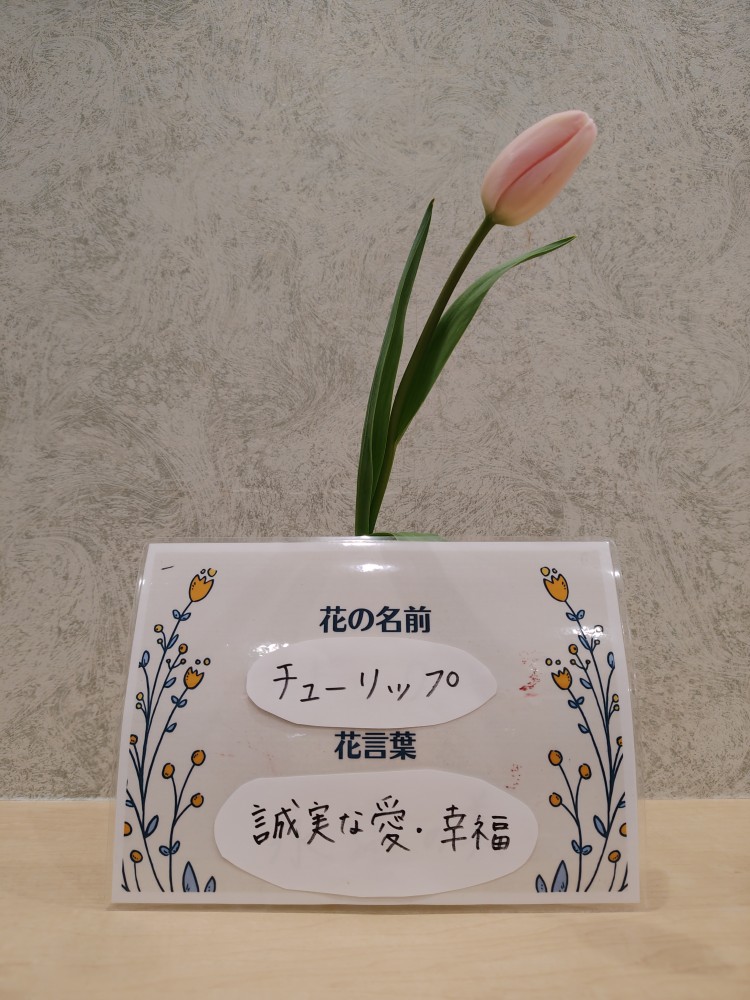フロントでは一足早く春のお花を飾っています。