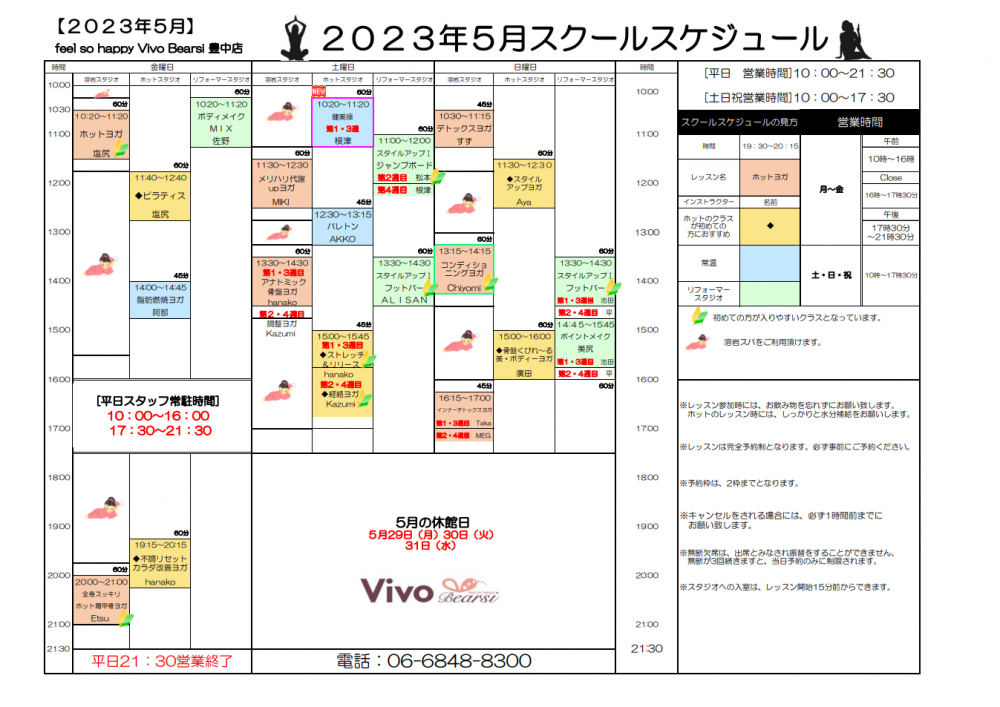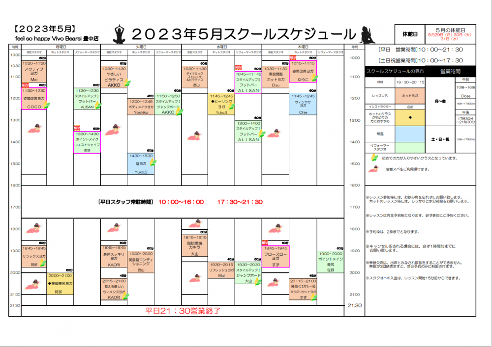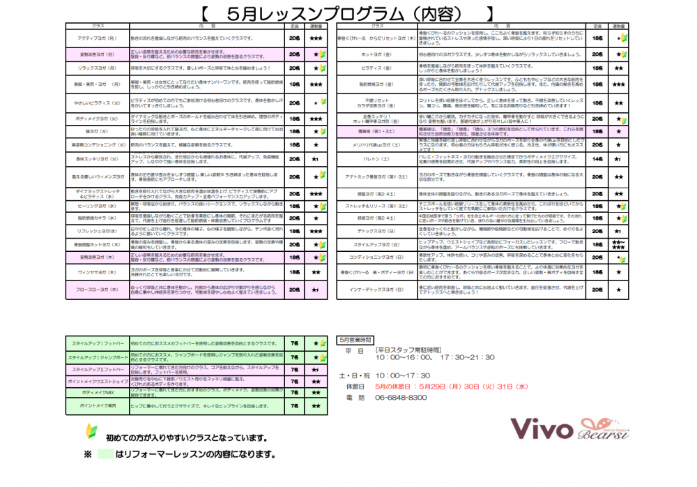 5月のレッスンスケジュールのご案内