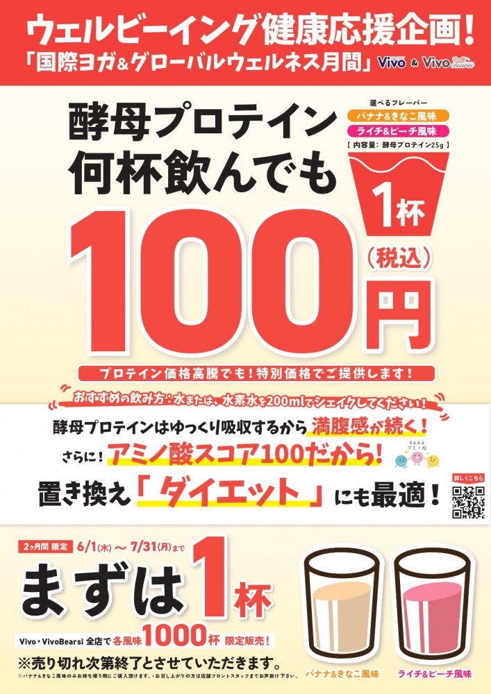 なななんと!えっ?!酵母プロテインが1杯100円なんです!!!