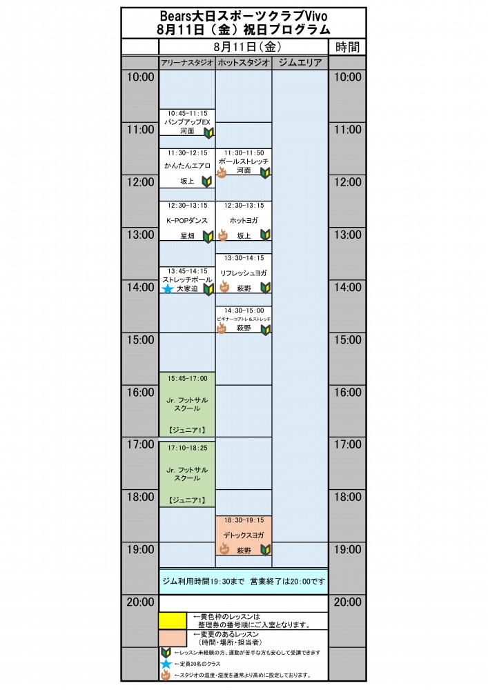 8月11日(金)祝日プログラム