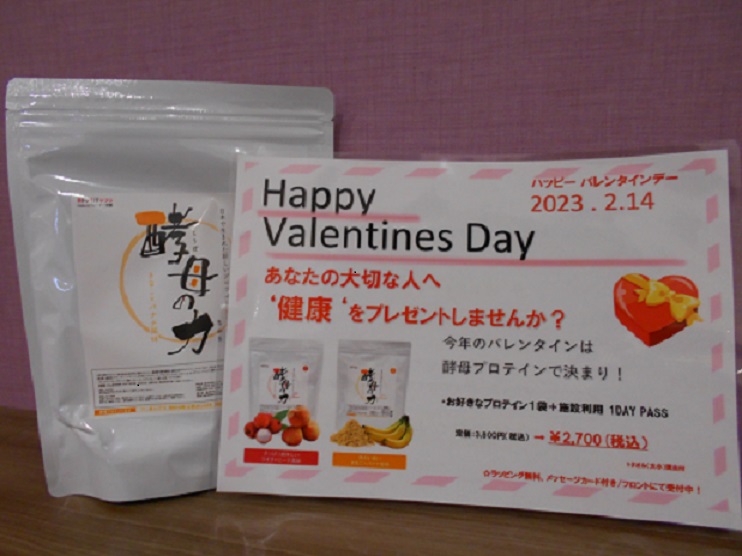 そこで当店では1月25日(水)より酵母プロテインと施設利用券がセットになったバレンタインギフトセットを販売いたします♥