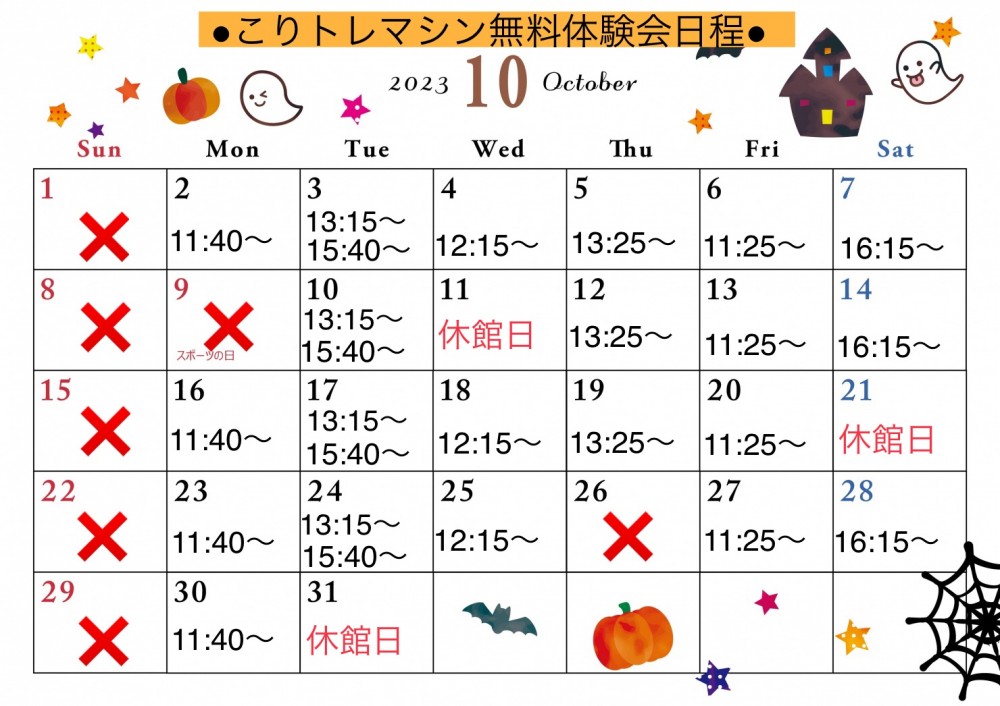 ●10月こりトレマシン無料体験会日程●