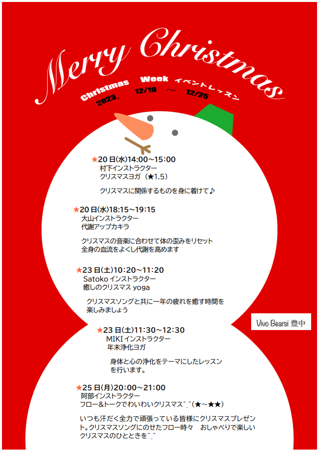 Christmasイベントレッスン! 12/19~25