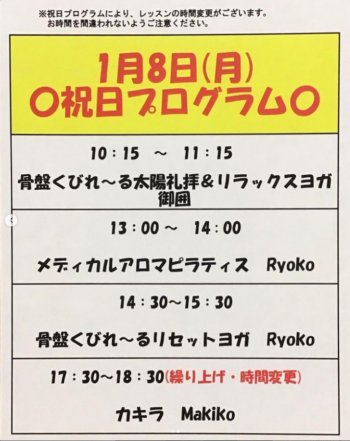 18:30~のカキラ(Makiko先生)の時間が17:30~に変更となりますのでお気をつけ下さい‼️‼️