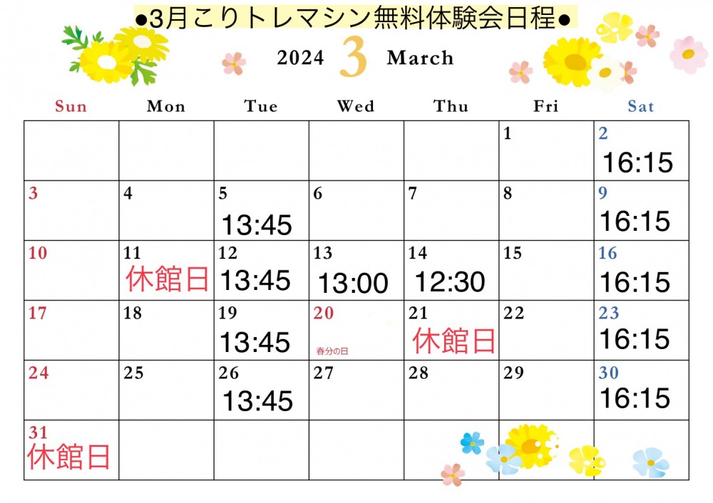 ●3月こりトレマシン無料体験会日程●
