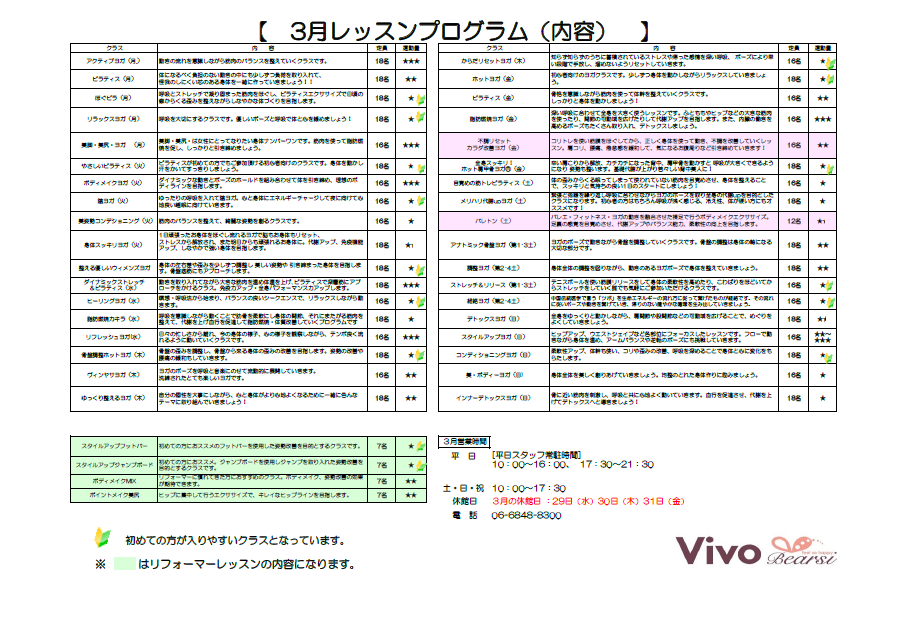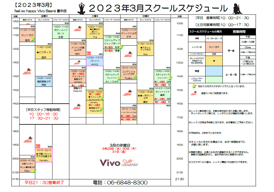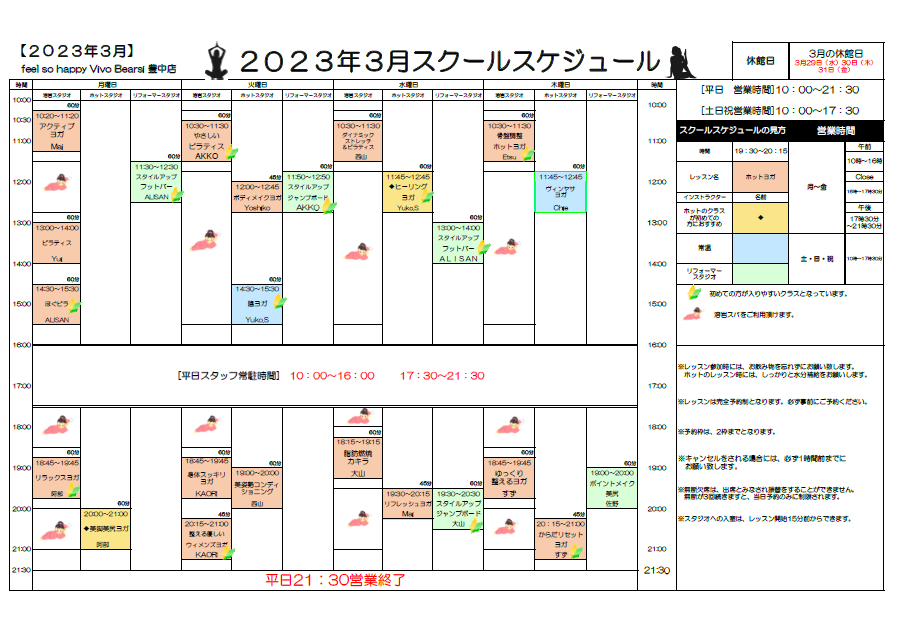 祝日レッスンでは、いつもと異なる開始時刻のレッスンがありますので、ご注意ください。