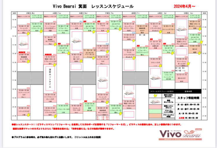 2024年4月のレッスンスケジュールのご案内です。