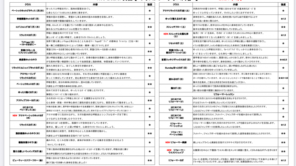他にも、時間変更や内容に変更があるレッスンがございますので、ご確認ください。