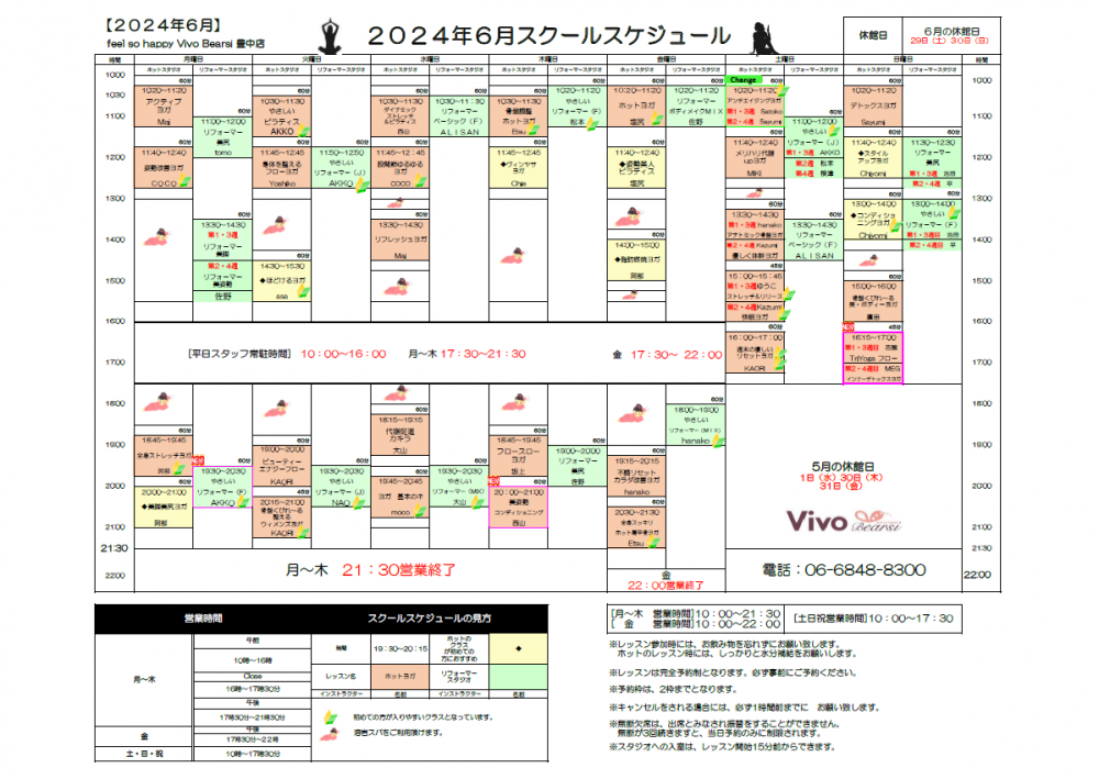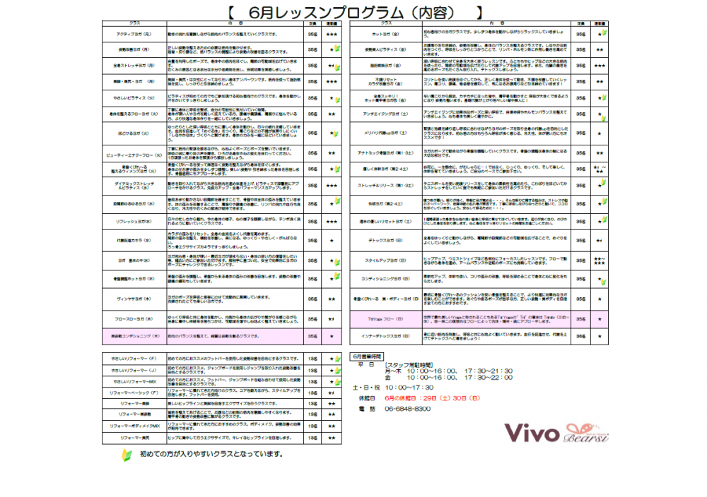 6月のレッスンスケジュールのご案内
