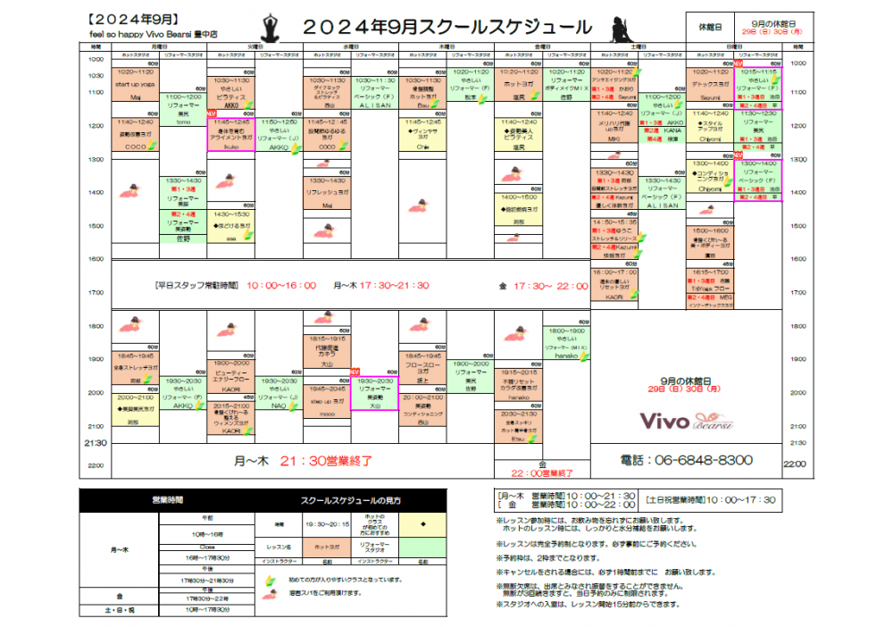 9月のレッスンスケジュールのご案内★