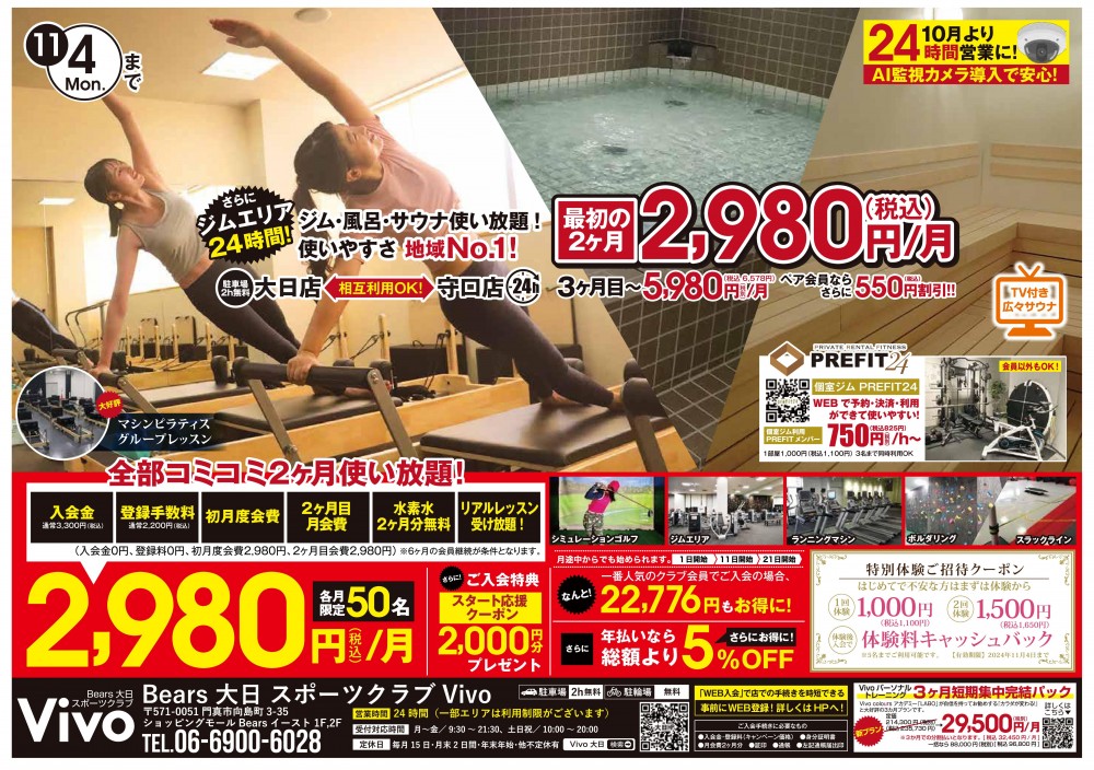 11月4日迄!月額2,980円(税込)で2か月間全ての施設をご利用いただけるキャンペーンを実施中です。この機会に、ジム、スタジオプログラム、サウナなど、充実した設備をお試しください。