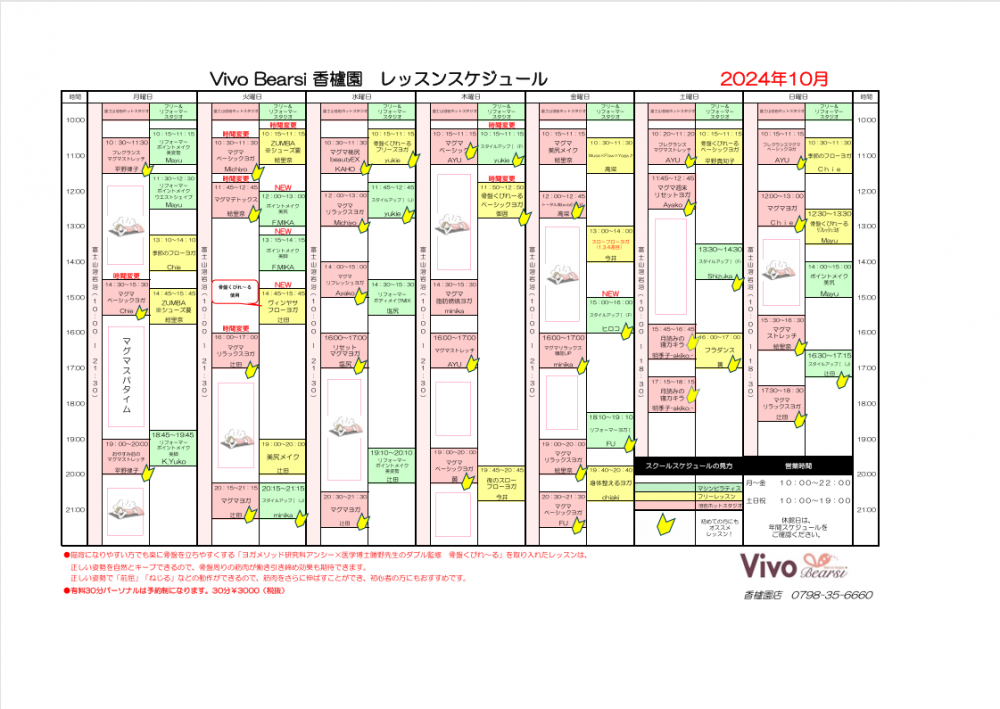 10月のレッスンスケジュールが完成しました★