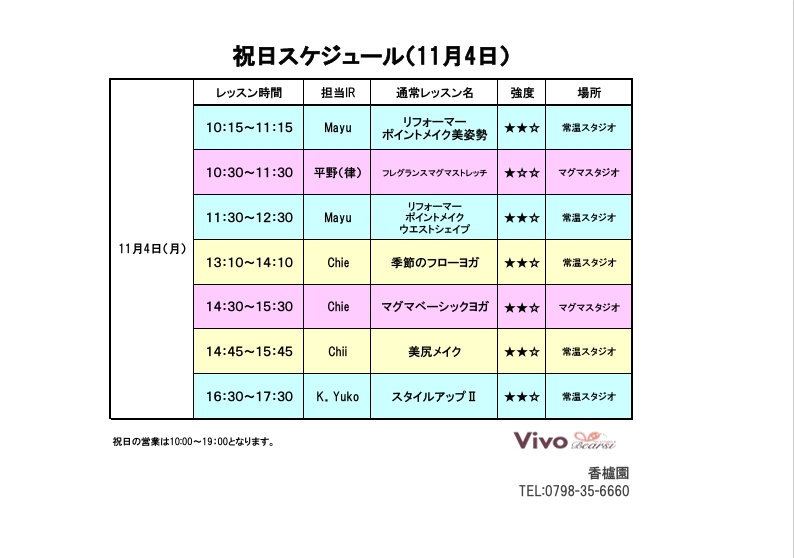 11/4(月)祝日スケジュール