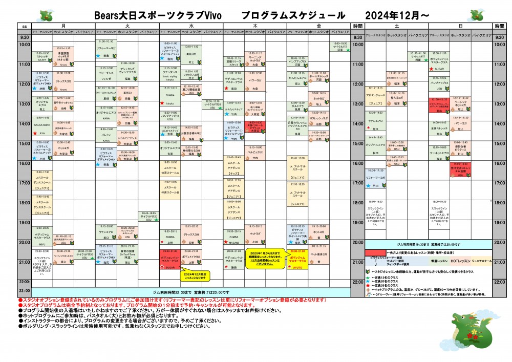12月レッスンスケジュール公開中