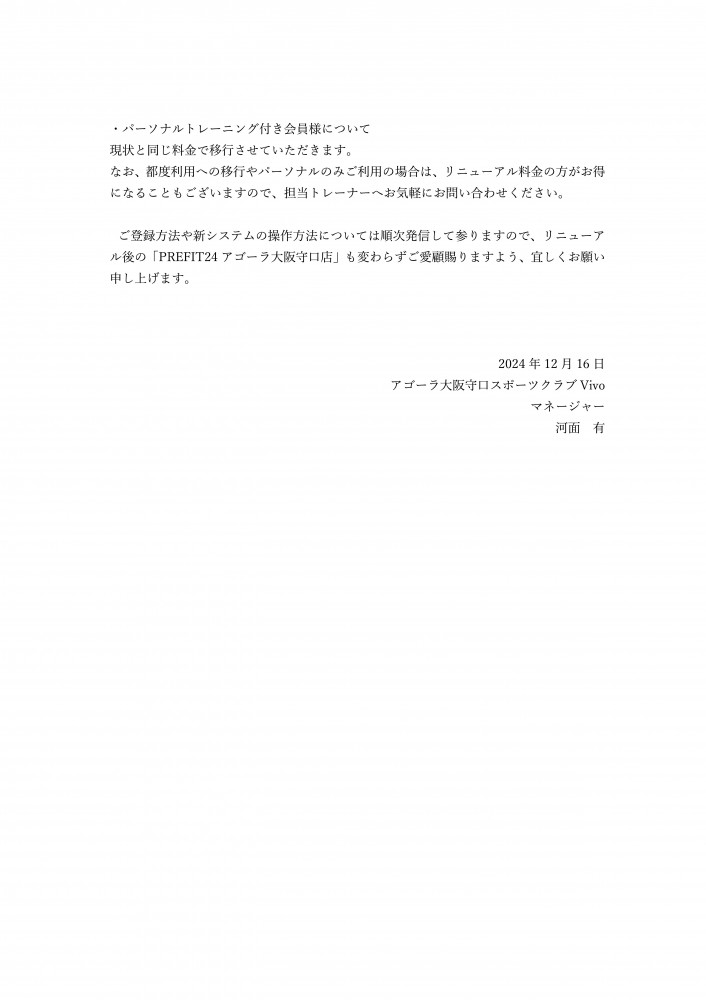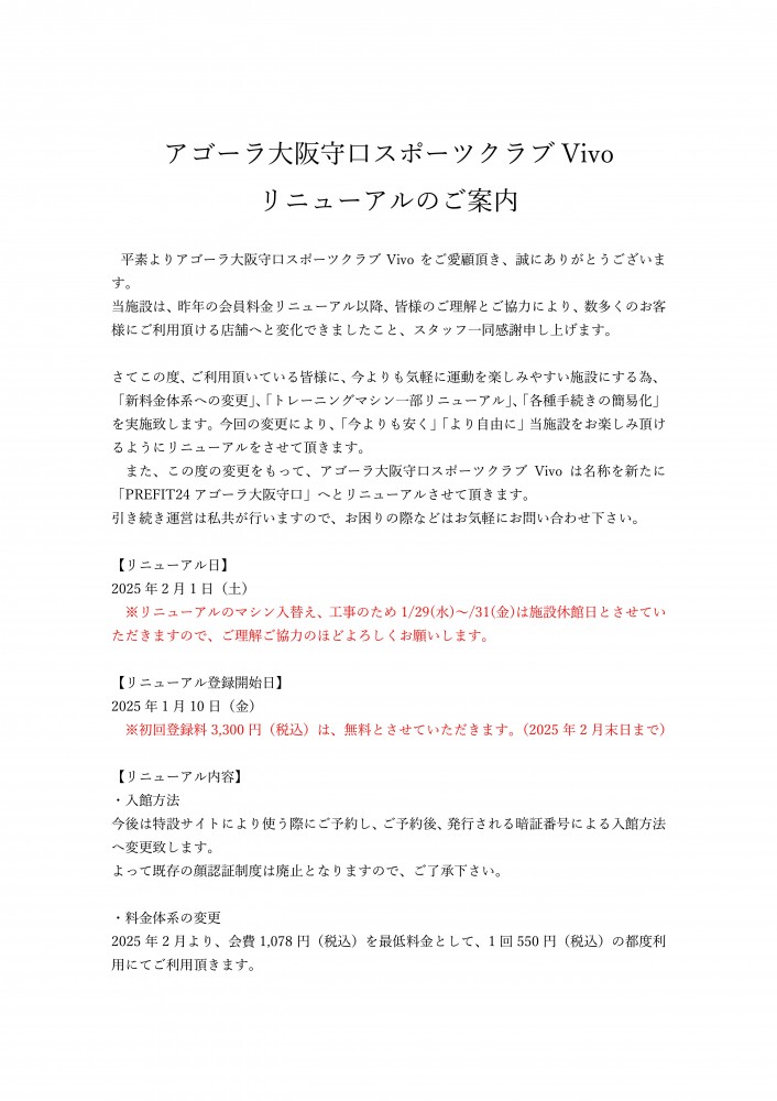 アゴーラ守口店リニューアルのご案内(2025年2月より)