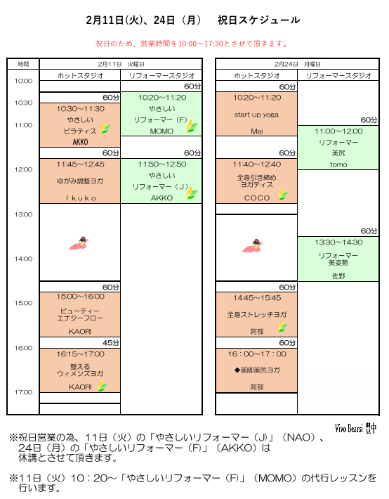 2025年2月レッスンスケジュールのご案内(^^♪